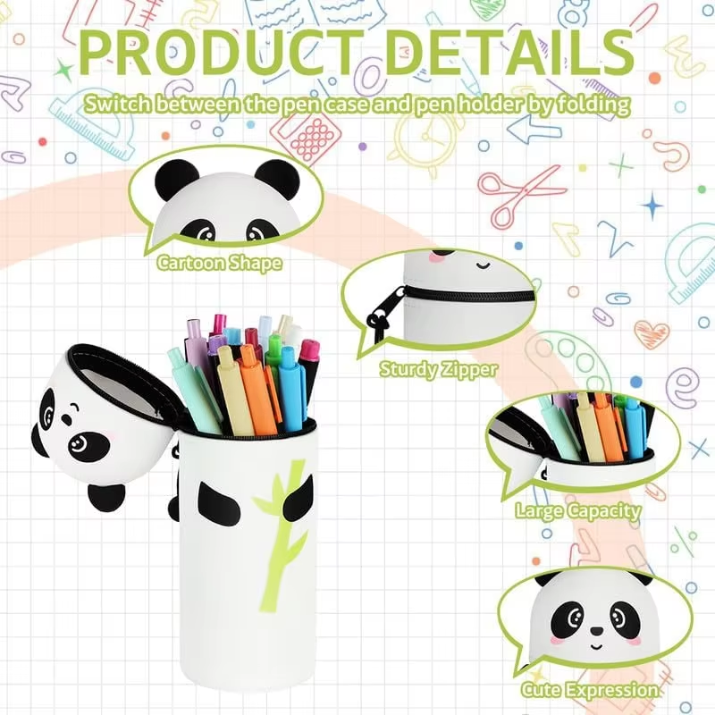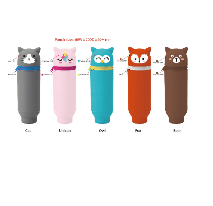 Detta är vår söta pennväska. Den som är gjord av silikon kommer att vara strikt enligt västerländsk miljövänlig. Under tiden kan vi anpassa produkten enligt dina krav: färg, tryck, storlek, karaktär.etc. Välkommen skicka oss förfrågan när som helst.