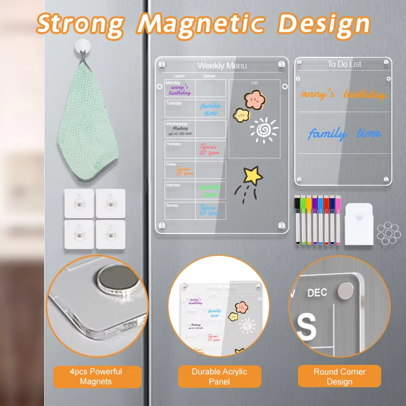 ● Vår magnetiska akryl-whiteboard kan anpassa utskrifter och storlek enligt din idé.
