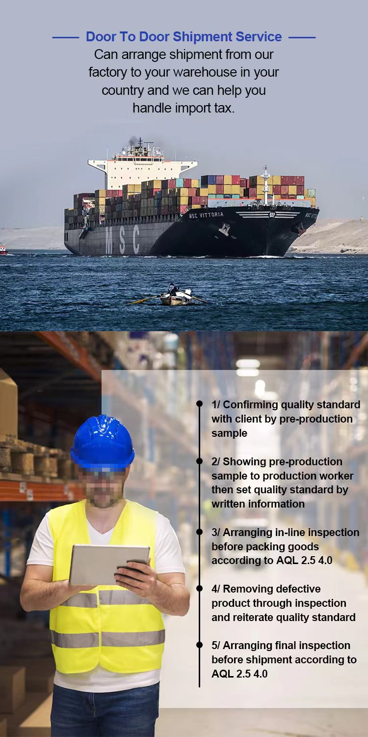 Vi klarade alla nödvändiga certifikat, som: ASTM D-4236 och CE. Och vårt QC-team kommer att ordna inspektion under in-line-produktion och efter produktion.