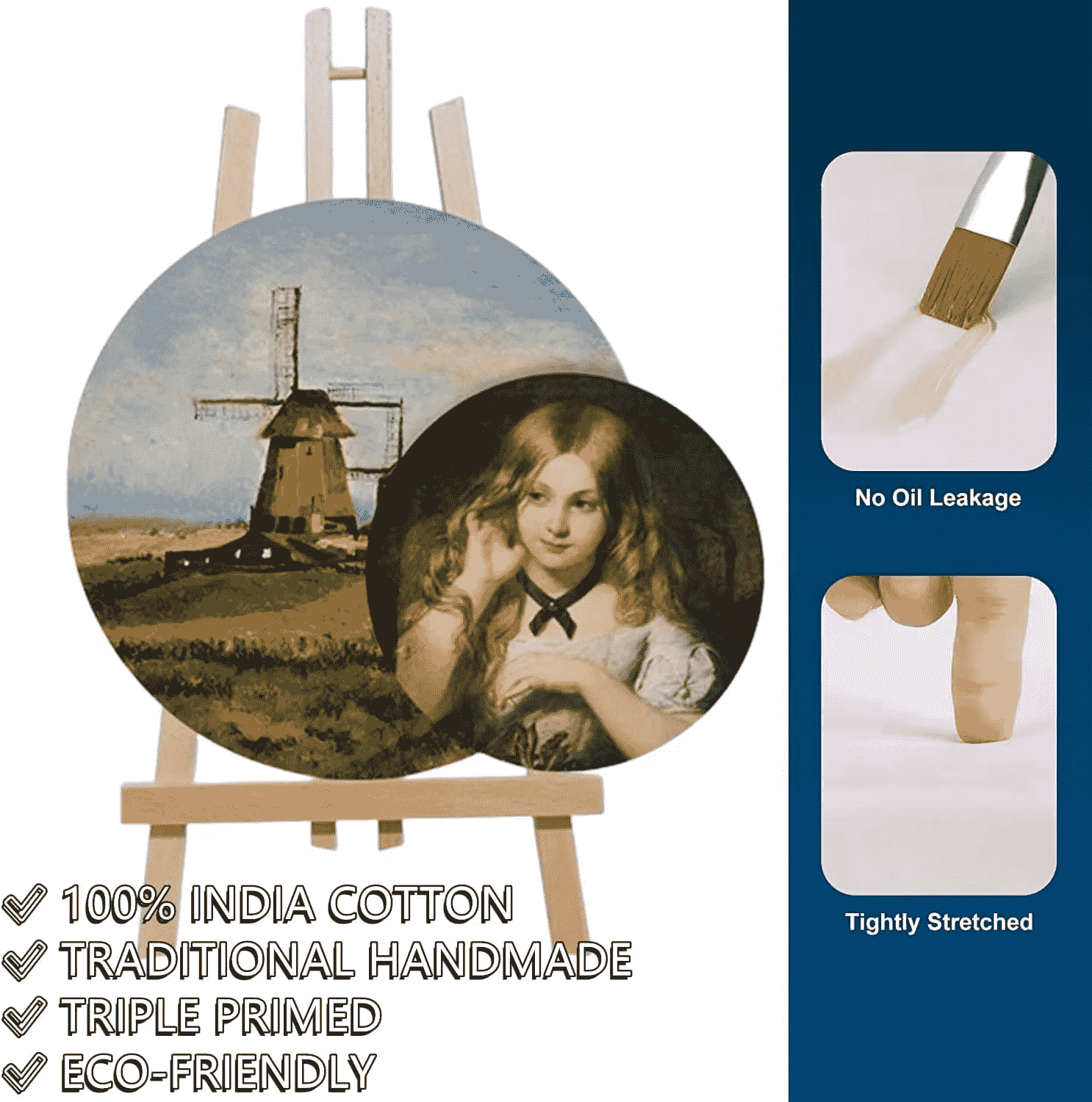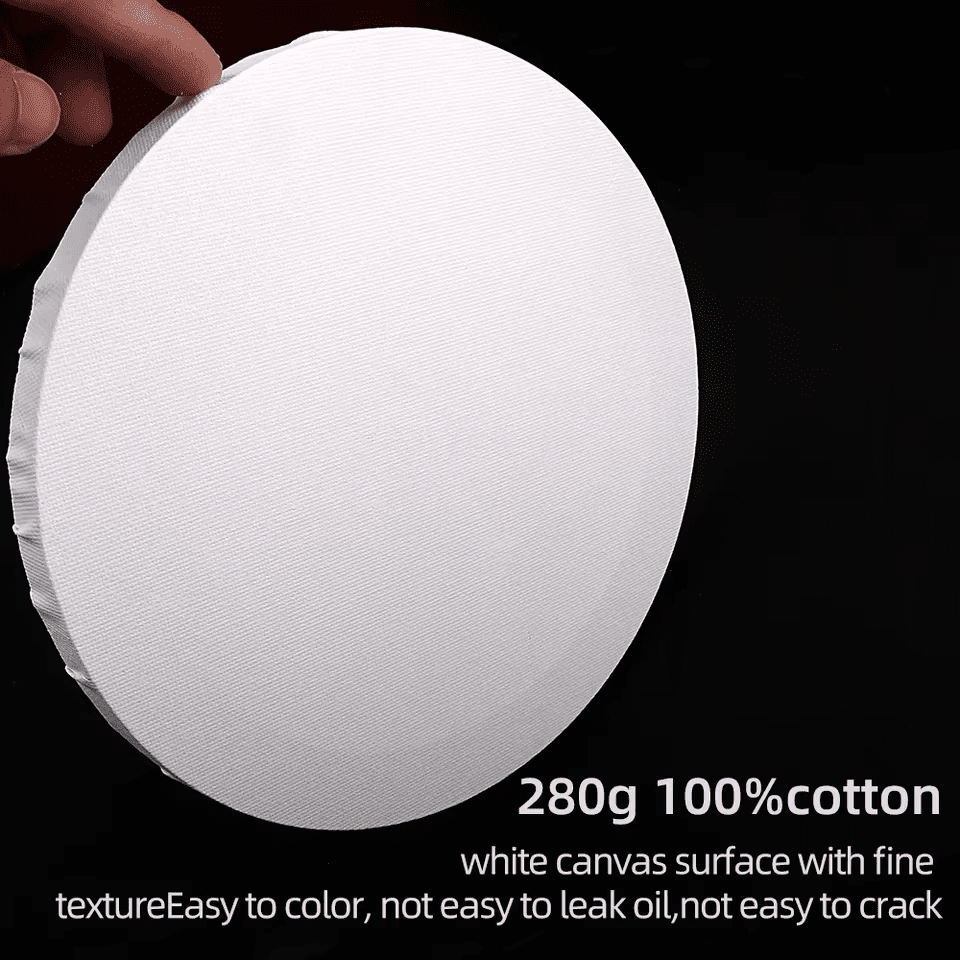 Phyno Round Painting Canvas som är gjord av ren bomullscanvas/Linne Canvas+MDF-skivram, alla strikt enligt EU och USA:s regler. Vi kan tillhandahålla CE- och ASTM D-4236-certifikat för det. För tillfället arbetade vi med många konststudio och Amazon-säljare. OEM-order välkomnas, kontakta oss när som helst.