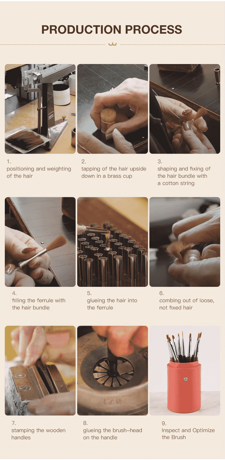 Ningbo Phyno är en av de största tillverkarna av sobelfärgborste i Kina. Vi är flexibla på kvalitet och kostnad, så vi kan samarbeta med många globala kunder över hela världen, de är: varumärkesklient, supercenter, Amazon-säljare och konststudio. Välkommen skicka oss förfrågan för alla OEM-krav, vi kan anpassa: borstmaterial, storlek, logotyp och paket för dig.